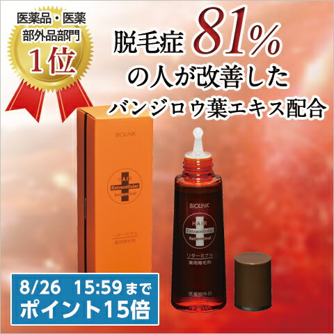 ●大注目商品です! ミノキシジルよりも高い発毛促進効果 脱毛症81%の方が改善した薬用育毛剤 リターミナル 100mL価格: 7,560円 レビュー評価:3.92 レビュー数:24 どうして、今までの育毛剤で効果のなかった女性に有効なのですか? 従来の女性用育毛剤には、抗男性ホルモン作用という概念はなく、ただ頭皮の血行促進や炎症を抑える作用の成分が入っているものが多いのですが、頭皮の血行を促進することで、DHTがさらに増えてしまい、逆効果になる場合も考えられるのです。 この薬用育毛剤「リターミナル」は、抗男性ホルモン作用と毛包細胞増殖促進作用を兼ね備えたバンジロウ葉エキスを配合しており、男性にはもちろんのこと、いままでの育毛剤で効果がなかった女性にもご使用いただける処方となっております。 DHT(ジヒドロテストステロン)とは何ですか? ジヒドロテストステロン(DHT)とは (更新日時:2016/08/24 09:33)