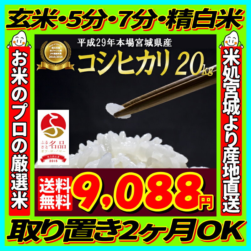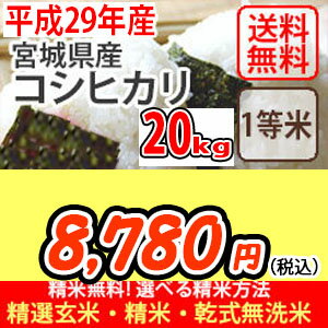 エントリー&対象期間リピートで最大1000ポイント!29年産 宮城県産 コシヒカリ 20kg!玄米,5分,7分,精白米(精米時重量約1割減)【米】【dp】【ne】【SS03】