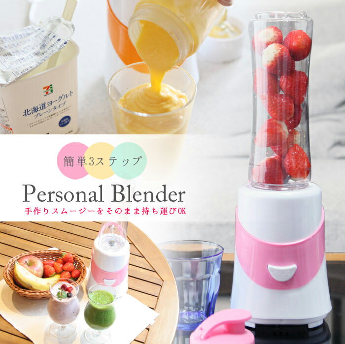 ●大注目商品です! 楽天最安値挑戦【送料無料】ブレンダー「パーソナルブレンダー」ミキサー ジューサー スムージー コンパクト スムージー そのまま飲めるボトル###ブレンダー525###価格: 2,180円 レビュー評価:4.12 レビュー数:717 いつでもどこでも手軽にスムージー習慣! スリムなスタンドタイプのパーソナルブレンダーです。 ボタンひとつおすだけで野菜や果物の栄養がそのままスムージーに! しかも、ボトルのフタを付け替えるだけで持ち歩きもできちゃう。 体の内側からキレイになって、心も体も健康に! 【商品詳細】 セット内容:本体、ボトル×1本 サイズ(約):幅12.5×奥行き12.5×高さ41cm ボトルサイズ(約):幅7×奥行き7×高さ25cm 重量:990g 電源:100V 50/60Hz 消費電力:250W 回転数:19000rpm ボトル容量:600ml 定格時間:1分 休止時間:2分 コード長:95cm 材質:ABS樹 (更新日時:2016/08/10 15:18)